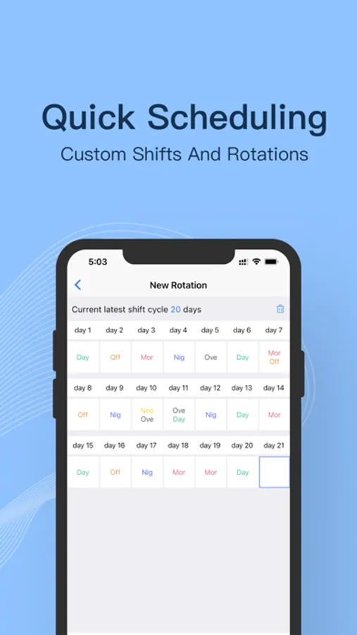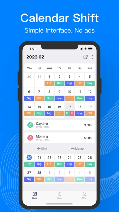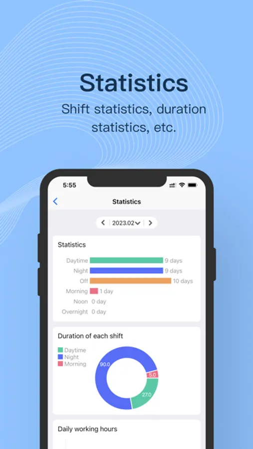 This is an intelligent scheduling tool designed for frontline and shift workers. It supports customized settings for generating cycle shifts, reminders based on work schedules, and a sleek and attractive desktop widget. It also supports multi-person shift schedules, shift schedule sharing, and shift statistics to make your scheduling more simple and convenient.