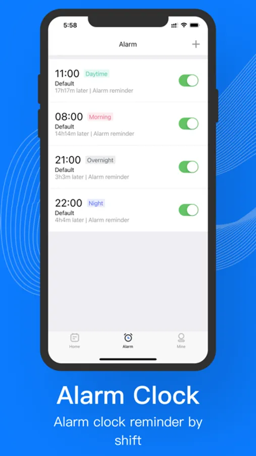 Thoughtful shift alarms that can set multiple alarms for different shifts. Alarm reminder methods include local calendar reminders, alarm clock reminders, and WeChat reminders.