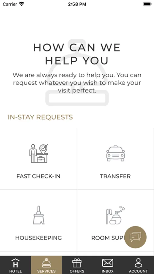 During your stay, you can chat with our hotel staff regarding your guest service requests by the mobile application and send your requests and feedback to us directly. We will be working to provide the best service instantly by evaluating the surveys regarding your experiences which we will deliver by the application while you are using it.