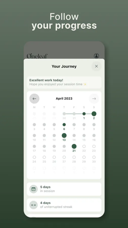 At Oneleaf, we believe that everyone deserves to live a happier, healthier life. That's why we've created an app that combines the latest research in hypnotherapy with a user-friendly interface and a beautiful design.
