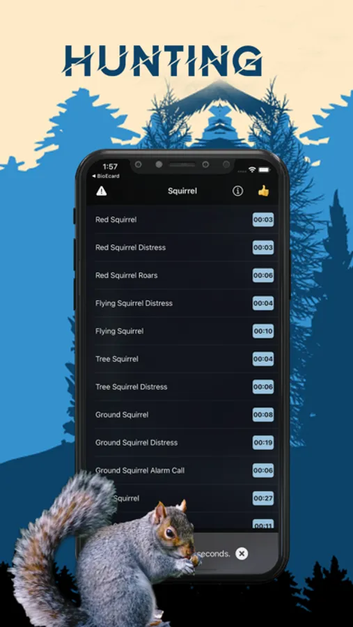 No longer do you need drag along bulky electronic squirrel calls or the even more cumbersome mouth calls. With this squirrel sounds and squirrel calls app you can simply select from a large selection of different squirrel sounds to attract the squirrels to your hunting location.