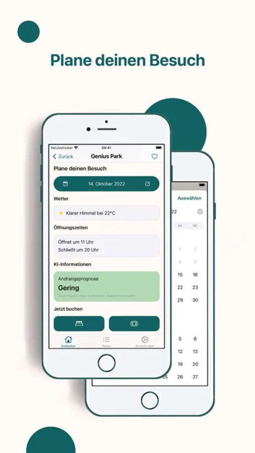 Unsere künstliche Intelligenz gibt dir im Vorfeld einen Richtwert, wie voll der gewählte Park werden soll. Dazu greifen wir auf eine Vielzahl von Einflussfaktoren zurück, wie zum Beispiel das Wetter.