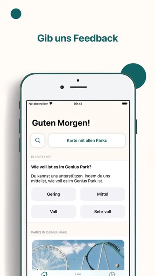 Um in Zukunft noch besser zu werden, kannst du uns während deines Besuchs eine Rückmeldung geben, wie voll der Park wirklich ist. Dein Feedback hilft unserer KI dabei noch genauere Prognosen stellen zu können.