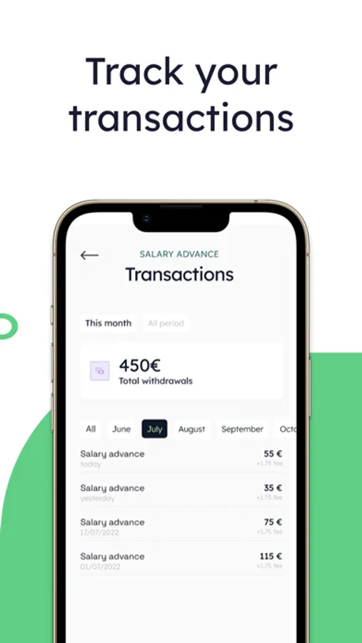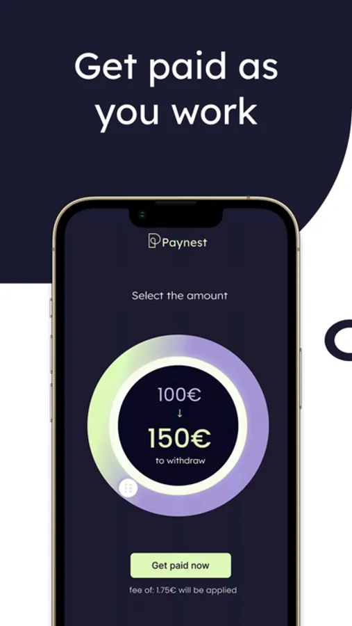 Paynest enables you to pay a bill, do your grocery shopping or cover an unexpected monthly expense. With the click of a button, you can receive a portion of your earned money directly into your bank account with a small fixed fee per transaction. At the end of the month, you still receive your salary from your employer, as usual, minus any advances you withdrew. As simple as that!