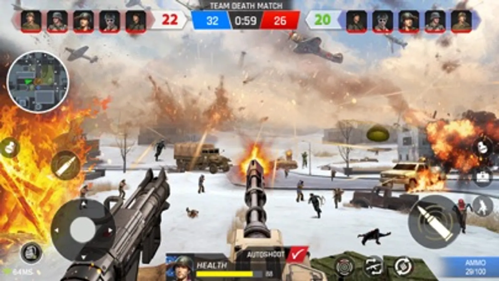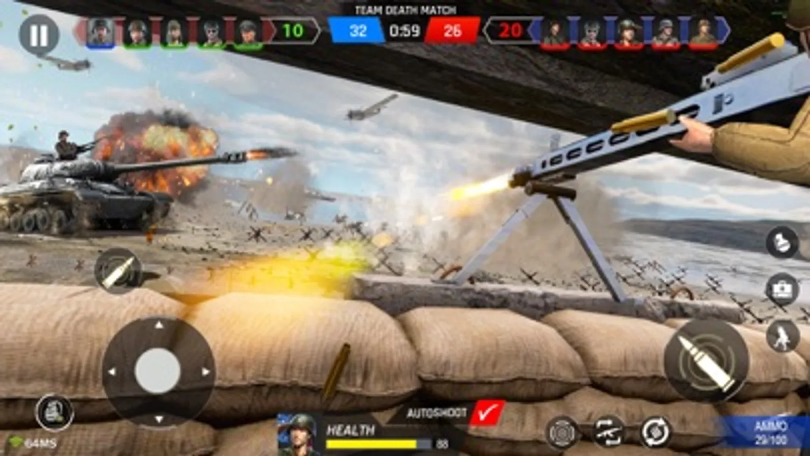 Welcome to the world of thrilling world war 2 army games based on action-packed single player and multiplayer shooting missions. There are variety of world war guns and other weapons in this army commando action ww2 game. Explore the different battlefield maps to encounter the opponent forces. You have to shoot the enemies around to survive in the team-death counter shooting missions. So download and play this world war 2 game to become the survivor of ww2 army games.