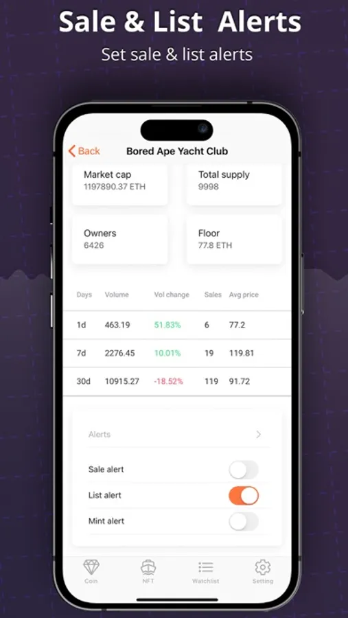 People who participate in Crypto presales know how important it is to learn about price changes fast. NFT traders can seize opportunities by setting up list & sale alerts.