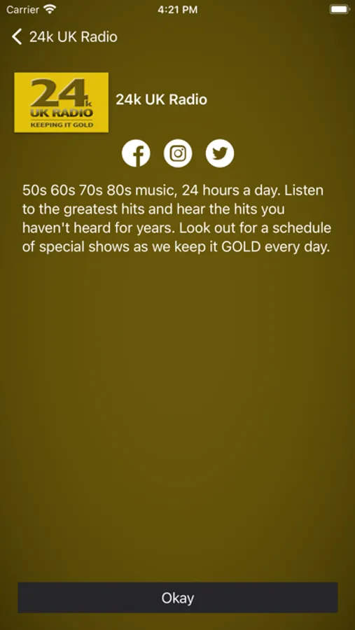 50s 60s 70s 80s music, 24 hours a day. Listen to the greatest hits and the hits you haven't heard for years. Watch out for a schedule of special programmes as we keep it GOLD every day.
