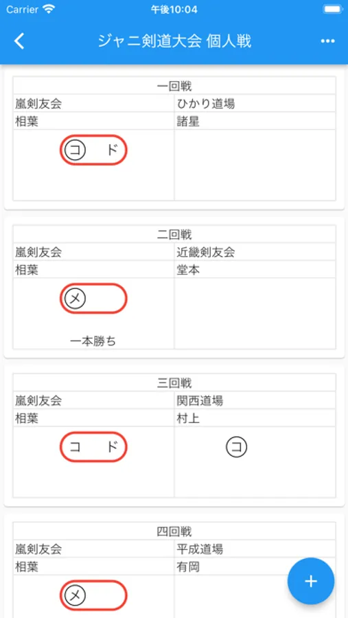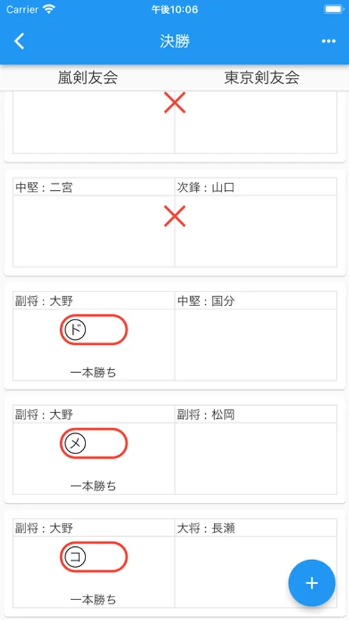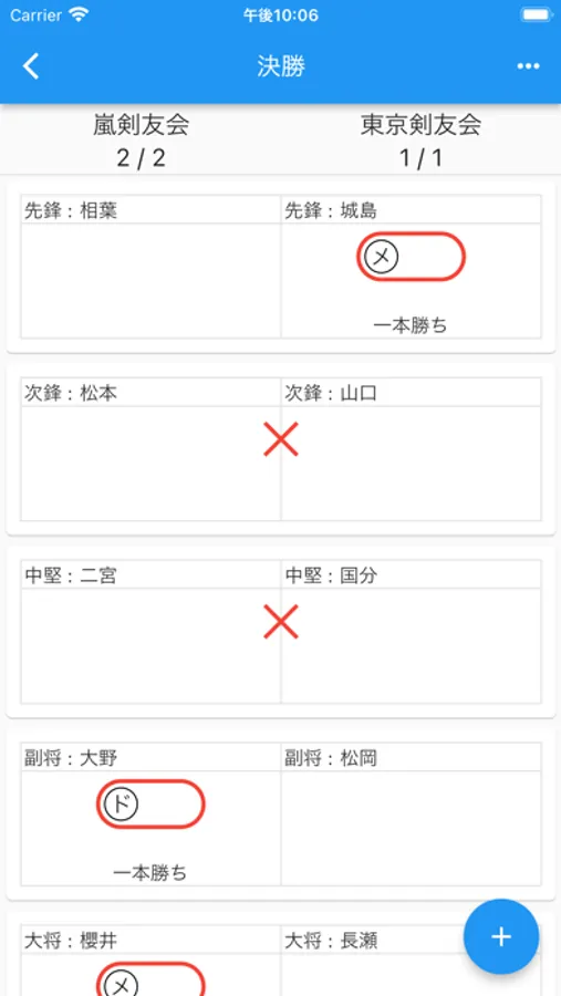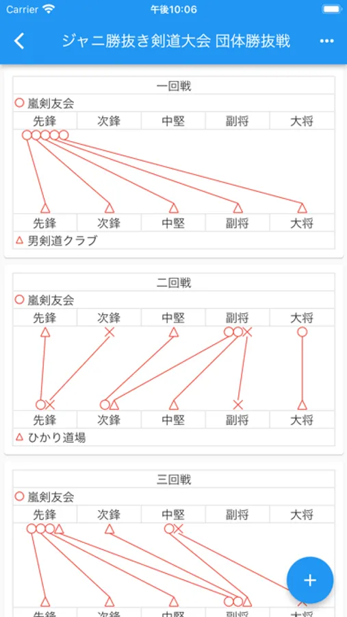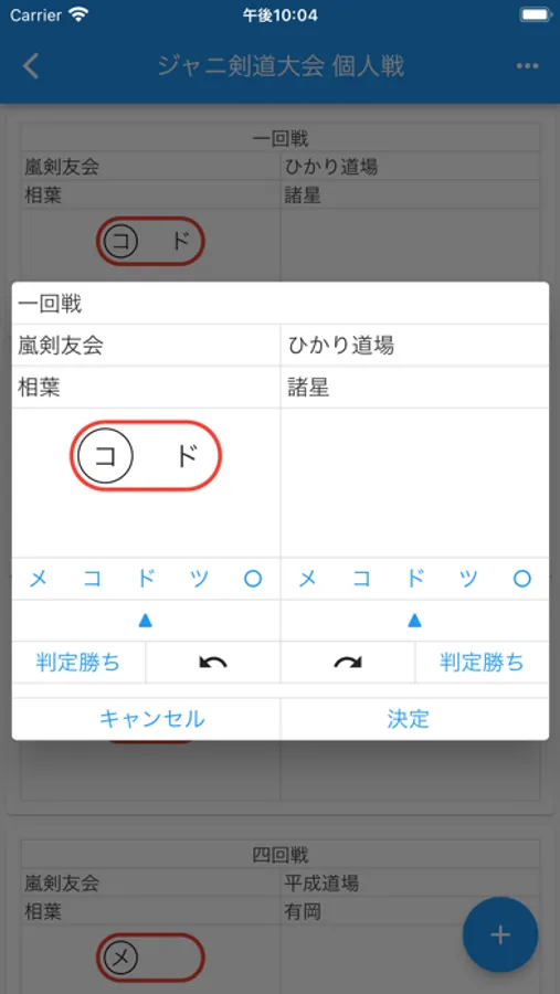 剣道の個人戦、団体戦、団体勝抜戦の試合のスコアを記録できるアプリです。