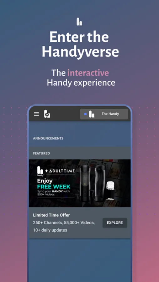 The Handyverse app is the complete interactive Handy experience. It connects your Handy to your Wi-Fi network and opens up the interactivity of the Internet for your pleasure.