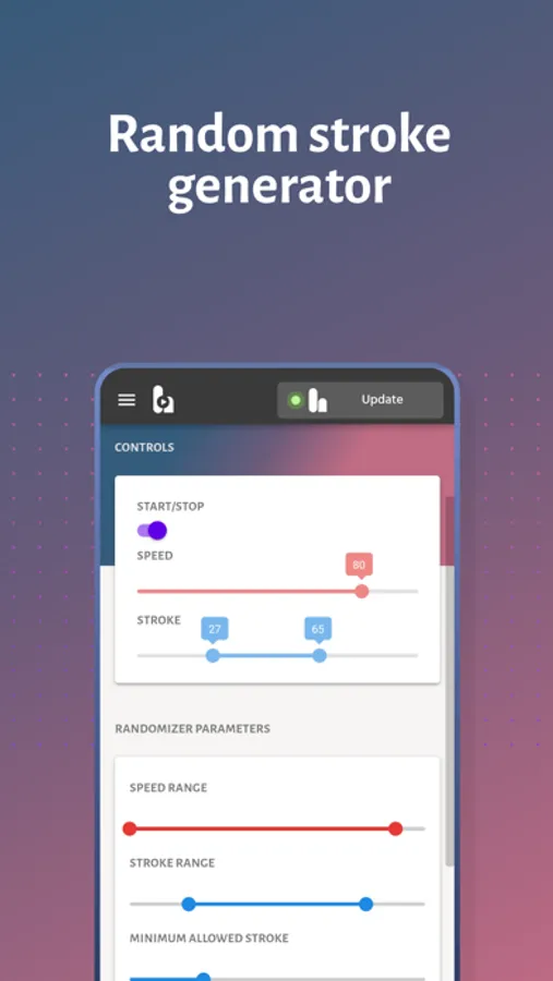 The app includes remote control for the Handy, a random stroke generator, local video playback, along with a list of video content partners.