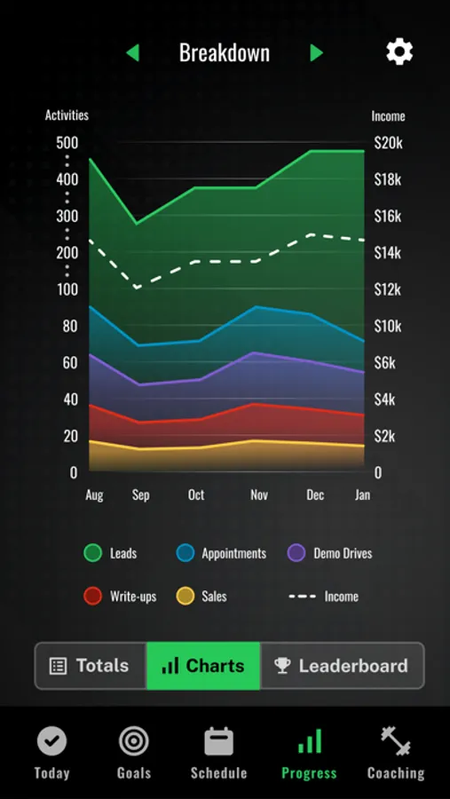 SOAR is a sales activity tracking app that helps users quantify and analyze their sales opportunities, activities, and results. It facilitates coaching between those who have particular skills and those who need those skills. It provides a competitive atmosphere using a Leaderboard. It also has an enterprise-level desktop portal that allows higher-level reporting and insight at a group level.