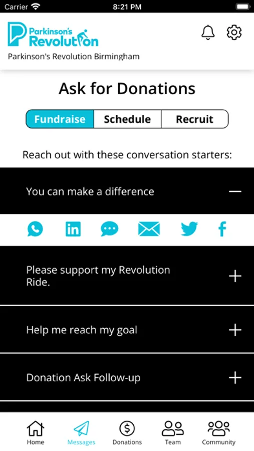 Connect with the Parkinson's community and fundraise on the go with the Parkinson's Revolution app! Edit your personal page, add a photo, send emails, check your fundraising progress, compete in community challenges, and connect with other riders. The Parkinson's Revolution app has everything you need to hit your goals right in the palm of your hand.v