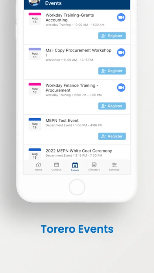 - Faculty and staff directory with direct calling or emailing from within the app.