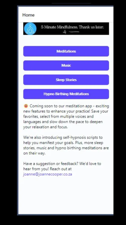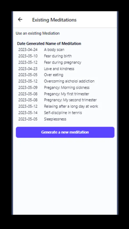 With our app, you can choose from a wide selection of existing 5 minute meditations that are designed to help you reduce stress, improve focus, and increase self-awareness. Or, if you prefer, you can create your own unique meditation tailored to your specific needs. Our app offers a simple and intuitive interface that makes it easy for you to create your own personalized meditation.