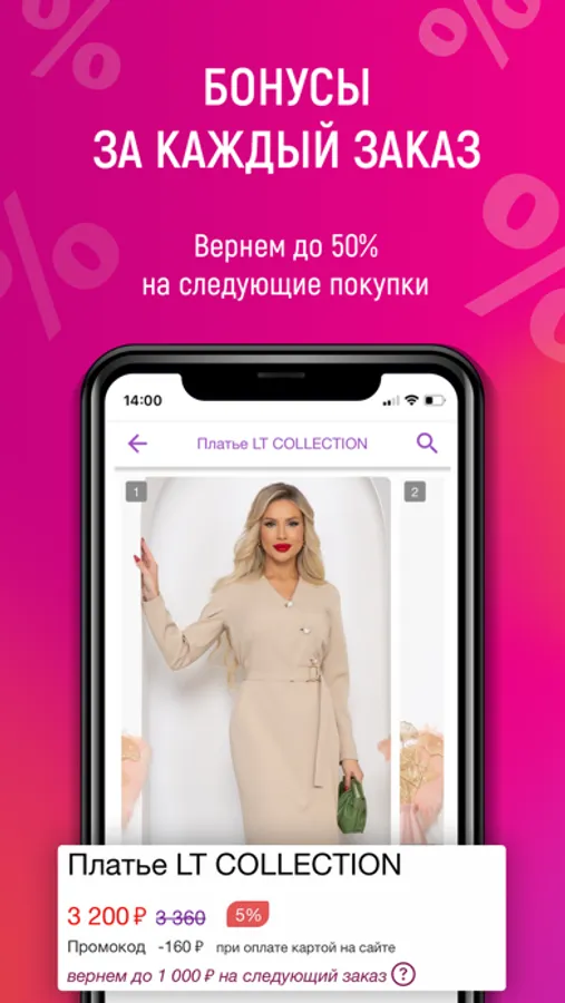 Бесплатная доставка с примеркой. Без предоплаты. Бонусы за каждый заказ. Бесплатный возврат, если вещи не подошли.