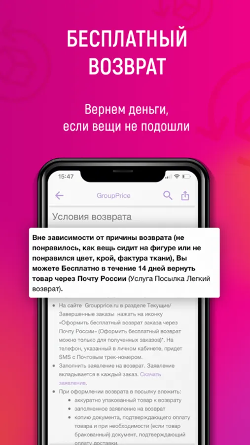 Загрузите и установите наше приложение прямо сейчас, чтобы стильная и недорогая одежда и обувь от GroupPrice была всегда под рукой.