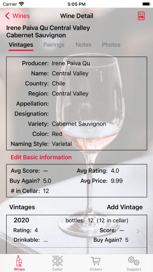 * Keep track of wines you've tasted or would like to taste.
