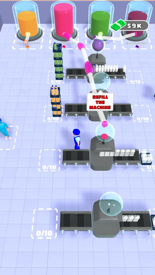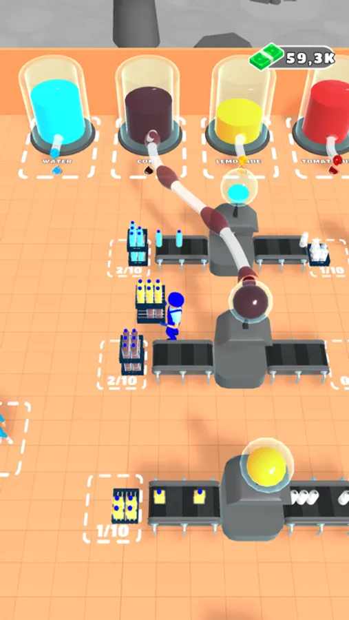 How many types of bottles do you know? Here you can connect four types of liquids to the machines, produce bottles, sell to the customers and start your bottle empire! Fill your packages, get ready and start your adventure!