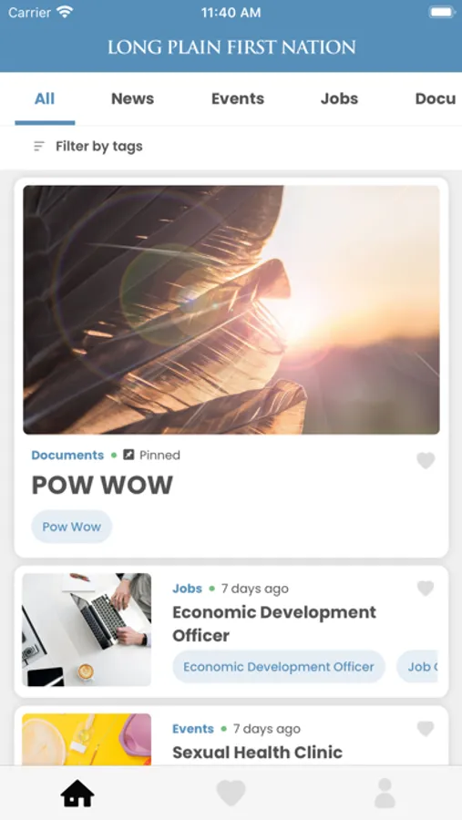 - View personalized feed supplied by the Band Office in a chronological order or by category: