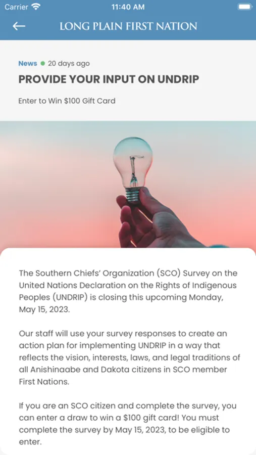 Welcome to the Official App of the Long Plain First Nation! We have developed the Long Plain First Nation app to be a communications platform for our community. Our app helps Long Plain First Nation staff, community members, band members, and the general public to keep up with goings-on around the Nation.