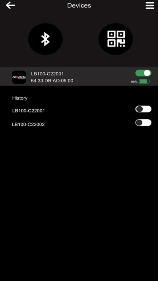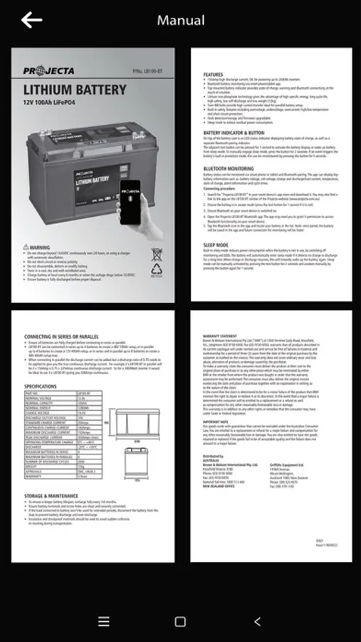 PROJECTA LB100-BT Bluetooth APP is been designed to monitor the Voltage, Current and State of Charge (SOC%) of the battery including alarms and cycle history.