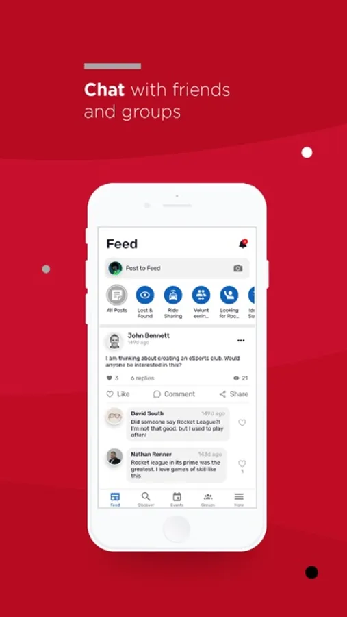 If you are already a part of an organization and want to manage your organization from your phone, you can! Start a discussion with a feed or chat with another member about your recent event. Huskie Hub is your one stop shop!