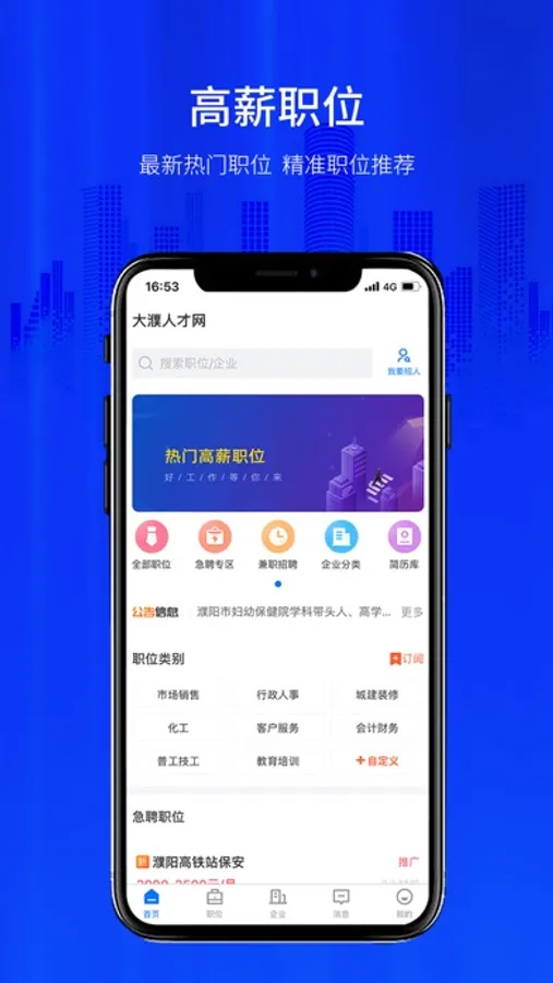 在濮阳招人才、找工作,就看大濮人才网! 大濮人才网是濮阳人才人力资源管理有限公司旗下招聘网站,致力于为求职者提供濮阳本地优质招聘信息、为企业提供招聘渠道,帮助每一个求职者在大濮人才网找到合适的工作!