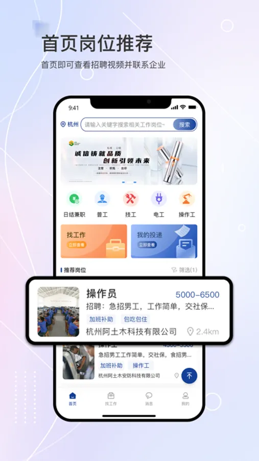 滴聘是一款针对一线蓝领工人的短视频招聘APP。