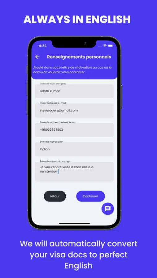 * Automatic translation to perfect English from any language you choose. So you need not type your data in English.