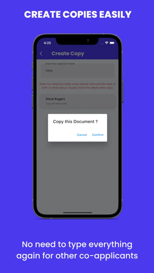 * Easy copy feature allows you to make copies and edit for other family member's visa application.