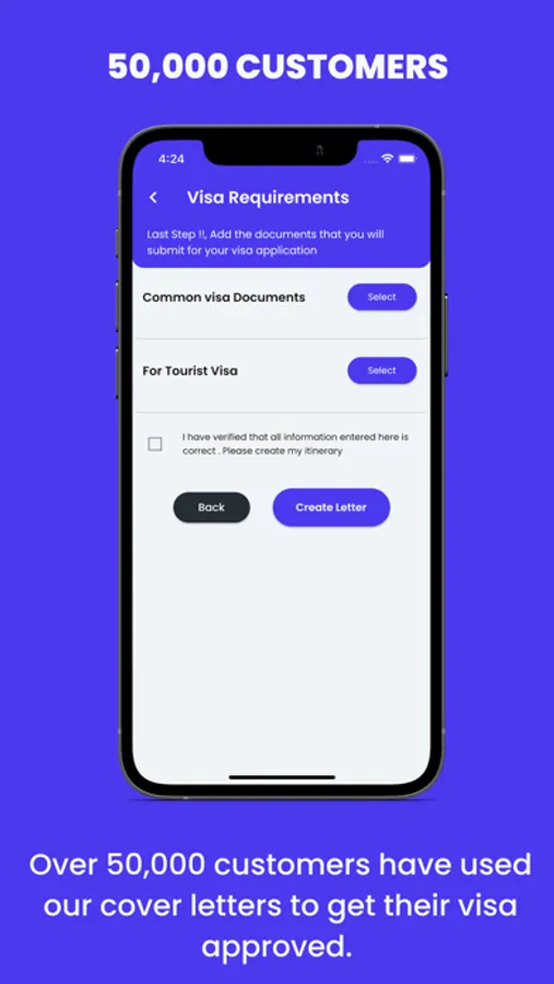 With BlinkDocs app, You can create personal cover letter & travel itinerary for any visa application. Just fill a form and complete the payment of $4.99 and you can download your personal cover letter instantly. Our cover letter has helped over 50,000 customers get their visa approved.