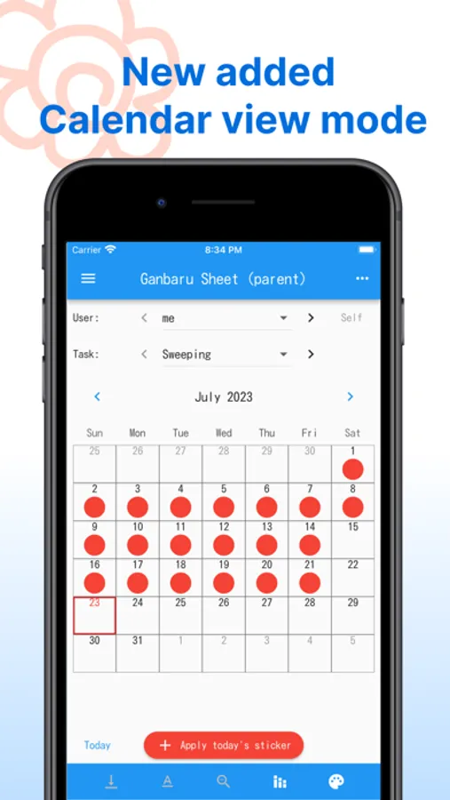 * Calendar view mode makes it easy to check your daily efforts.