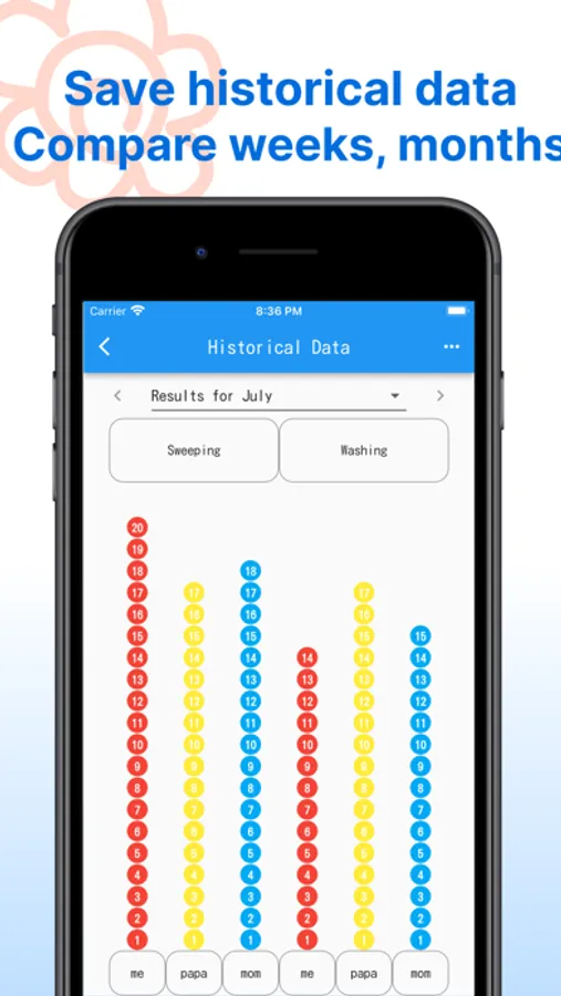 Please use this app to compare the number of times you helped your friends, family members, or colleagues, the number of times you cleaned the house, your business performance, and the number of other things you worked hard on.