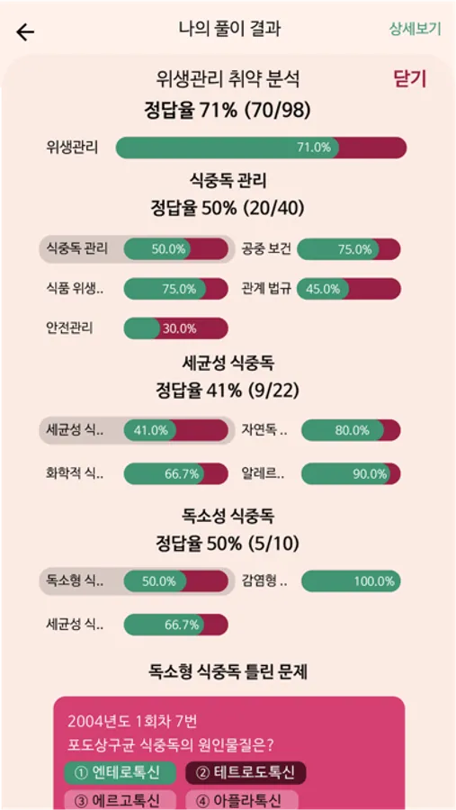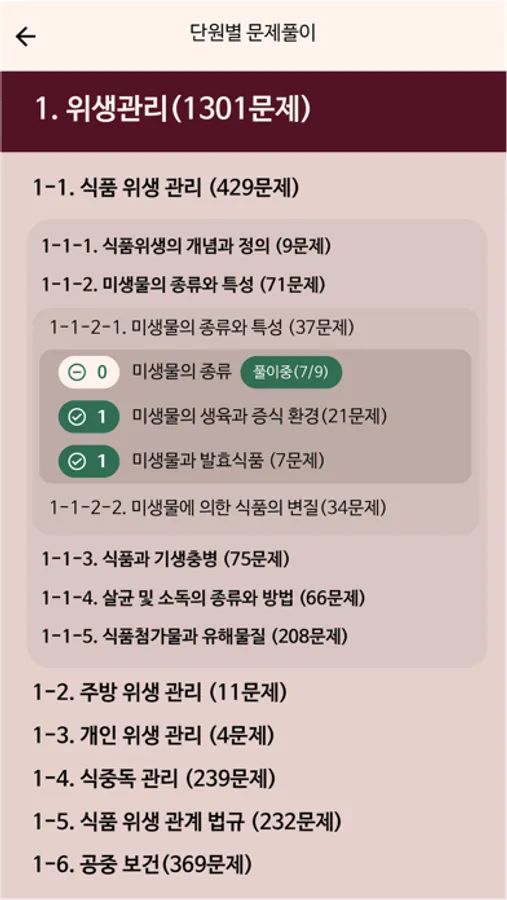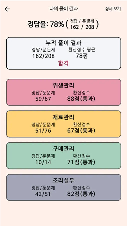 2. 주제별 문제와 요약노트 모든 문제를 과목(위생관리, 재료관리, 구매관리, 조리실무)별로, 그리고 주제별로 분류하였습니다. 또한 각 주제별로 핵심 암기 포인트들을 모아 정리한 요약노트를 통해 효율적인 학습과 암기가 가능하도록 준비했습니다.
