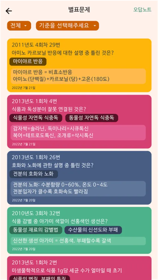3. 오답노트와 메모장 틀린 문제는 따로 모아서 반복해서 풀어볼 수 있도록 오답노트 풀이 기능을 제공합니다. 중요한 문제는 별표 후 나만의 암기 메모를 추가해서 관리할 수 있습니다.