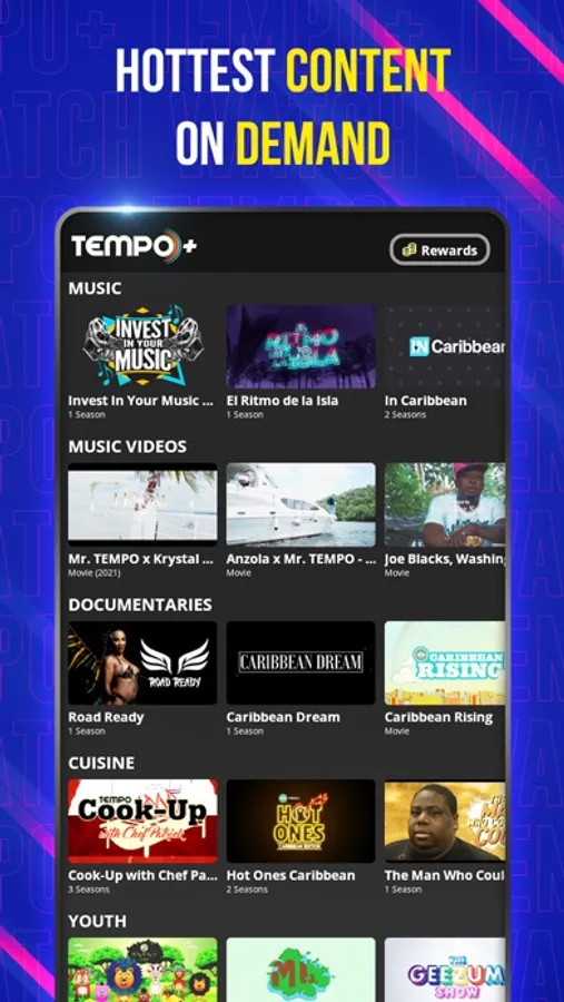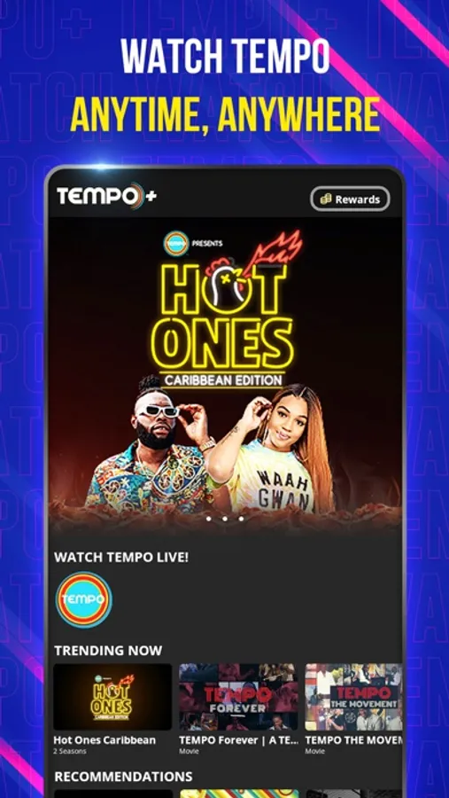 DOWNLOAD to get FREE access to the very best curated Caribbean content on the go with TEMPO+ for streaming videos anywhere, anytime. Earn rewards just from watching. The more you watch, the more you earn!