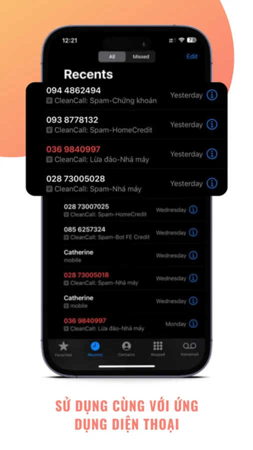 - Automatically display numbers in the form of spam, credit, scam... before you answer the phone