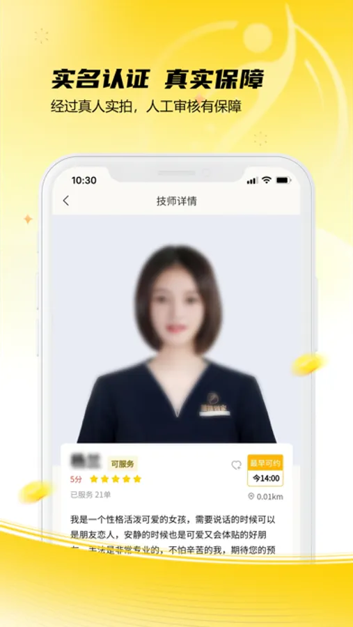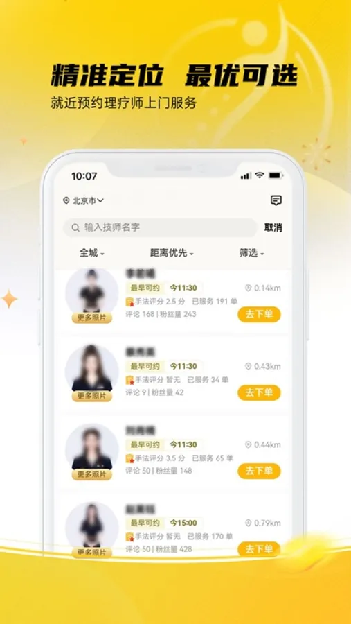 2、理疗师认证:理疗师全部经过实名认证,经过真人实拍。