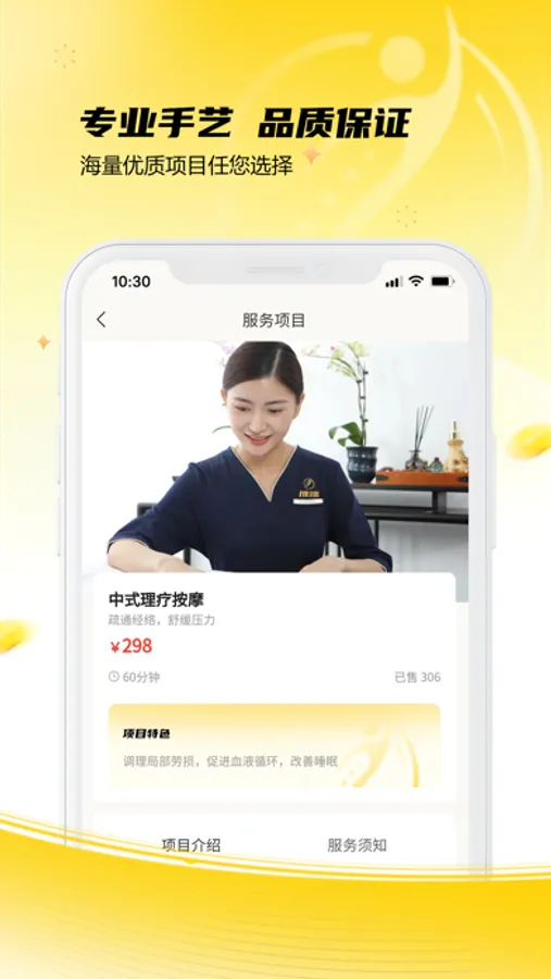 1、上门服务:用户可以根据自己的需求,选择合适的服务项目,同城24h极速上门到家。