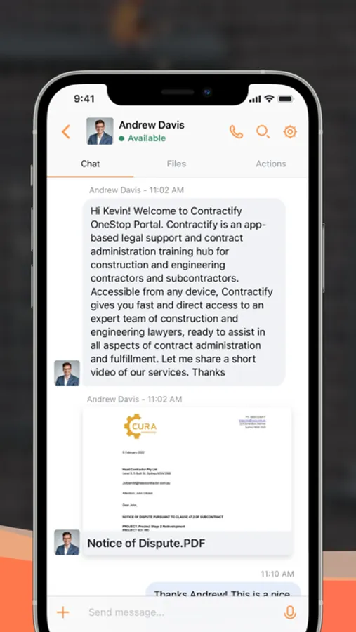 Accessible from your mobile device or desktop, Contractify gives you fast and direct access to an expert team of construction and engineering lawyers who are ready to assist you in all aspects of contract administration and fulfillment.
