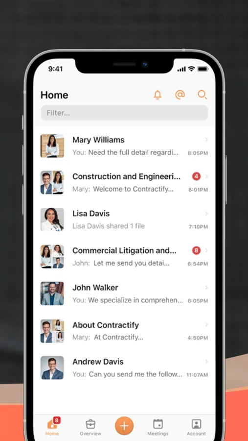 Use the Contractify app to interact with our team. Features such as document sharing, contract e-signature capabilities, task management, and more enable streamlined support from end to end.