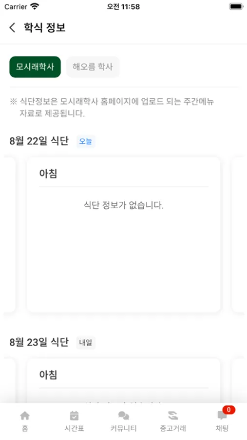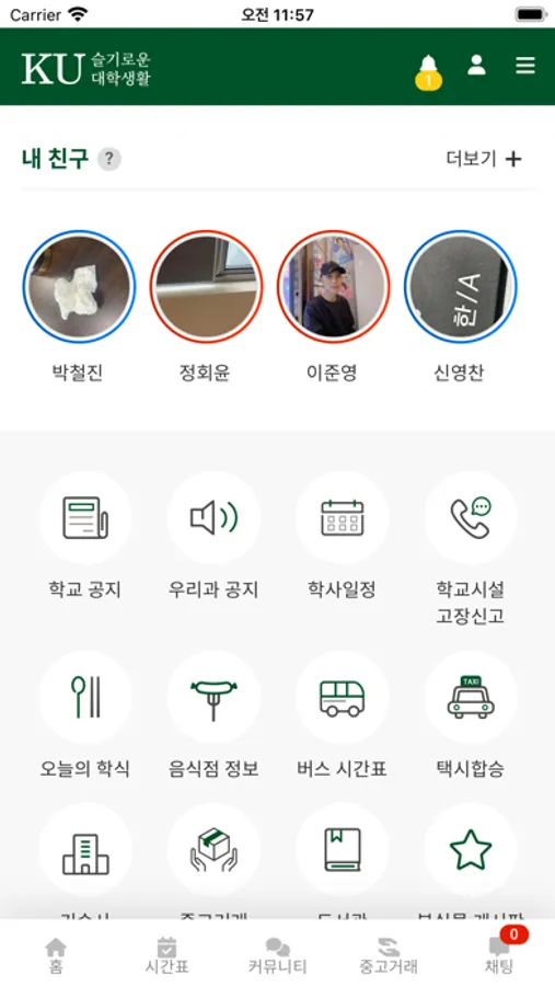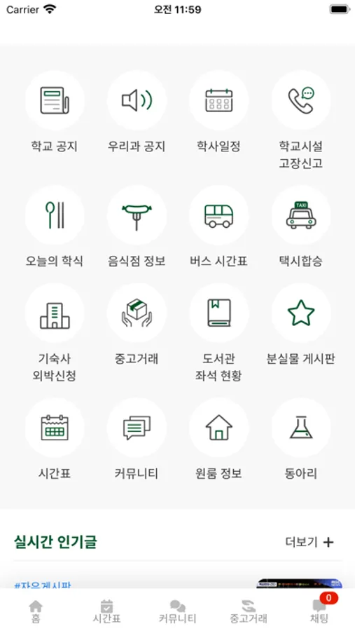 그 외 오늘의 학식, 버스시간표, 도서관 좌석 현황 등 그 외 학생들이 꼭 필요한 정보들를 제공하고 있습니다.