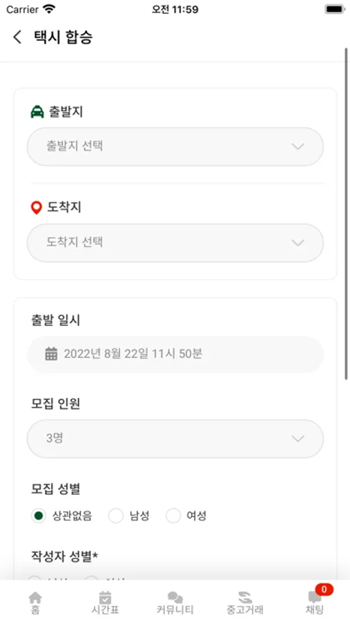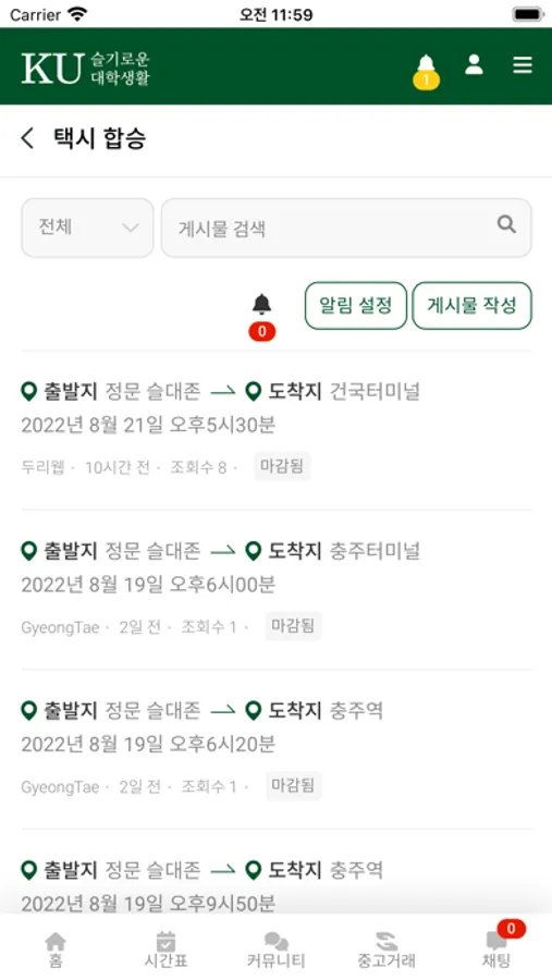 또한 교통비 절감을 위해 같은 학교 학생끼리 택시합승을 위한 기능을 지원합니다.