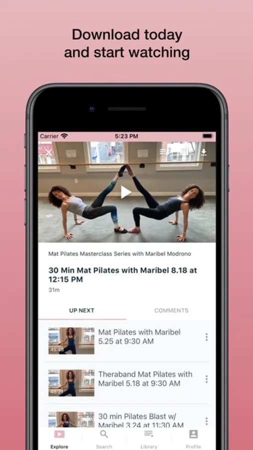 In our platform, you will be able to save your favorite classes to compile your own private library, as well as use our search function to find your favorite teachers. We also offer Crosstraining and Cardio modalities, as well as Stretching workshops. Our Focus classes are 20 minutes of zoning in on a select muscle pairing, as well as our Target Ten classes, which are ten minutes in length, and will allow you to focus in on one muscle grouping."