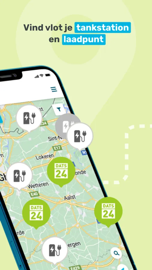 - makkelijk navigeren naar het dichtstbijzijnde DATS 24-tankstation of laadpunt