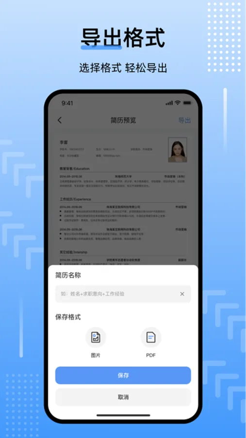 一键保存制作生成简历,一键导出PDF文档,轻松制作A4打印PDF文档