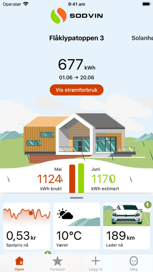 Last ned Sodvin-appen og få kontroll og oversikt over ditt strømforbruk. Med appen kan du lade elbilen når strømmen er billigst, koble opp smarte produkter og se hvilke utslag årstid, vær, helger og ferier har på strømforbruket ditt.