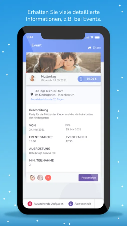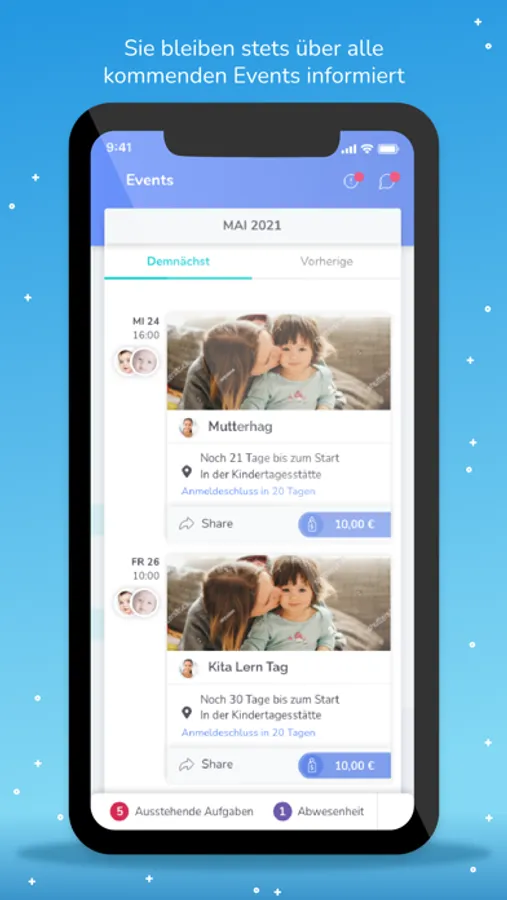 Die sira Eltern App stärkt die Interaktion und Partizipation zwischen Mini-Kita/Großtagespflege, Fachkräften und Eltern. In diesem geschützten Umfeld können Sie am Betreuungsalltag teilhaben und erhalten wertvolle Einblicke in die Entwicklungsstufen Ihres Kindes. Die Freischaltungen für die App erfolgen durch die jeweiligen Mini-Kitas/Großtagespflegen von sira. Bei technischen Fragen zu der App können Sie das Kidling Support Team unter support@kidling.de kontaktieren