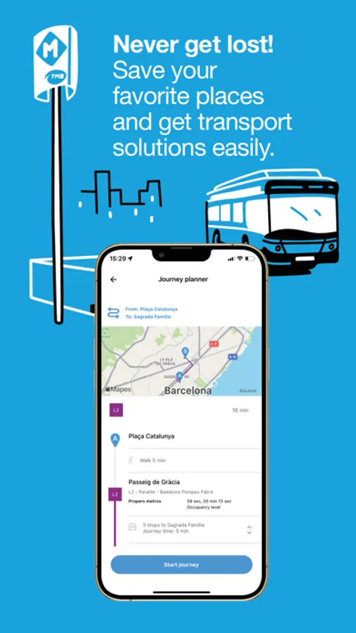 All the information about the Barcelona Bus Turístic and the Telefèric de Montjuïc in a single app: routes, stops, prices... Seize the time to enjoy and not to look for information!