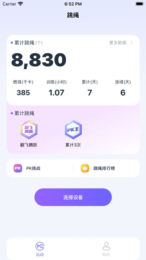 秀觅智能APP致力于为健身爱好者提供精准的数据化运动健康体验。跳绳硬件可通过蓝牙连接APP,相关数据支持实时更新;支持查询往期运动数据;支持查询跳绳周/月排行;支持跳绳模式自由跳、计时跳、计数跳切换;还可以和好友进行跳绳PK比赛。